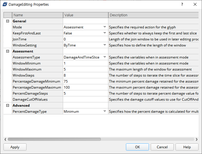 설정에서 1~5사이 8개의 시간 간격을 사용해서 각 시간 window에서의 Damage를 구합니다. 전체 구간에 대한 Damage 가 아니다 보니 일부 생략이 되게 됩니다.