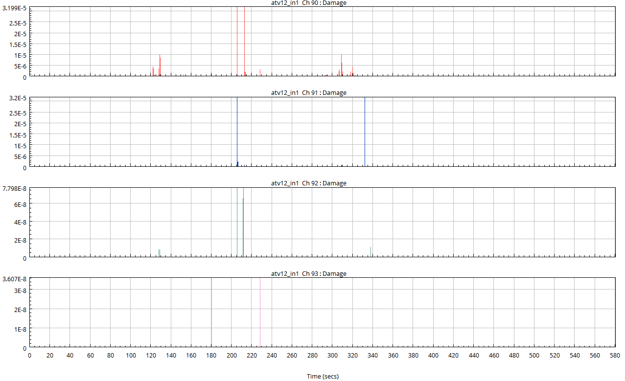 위 그림과 같이 시간의 흐름에서 Damage 값이 튀는 부분에서 Fatigue 관점에서 영향을 주는 Cycle이 발생 했음을 알 수 있습니다.
