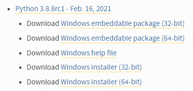 앞서 확인한 파이썬 버전을 아래 링크를 통해 검색합니다.