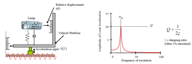 차량의 전면 램프는 차량을 구성하는 작은 파트 중에 하나 이므로 실제 램프에서만 발생하는 진동을 측정하기란 현실적으로 불가능에 가깝습니다. 그리고 프로토타입(Prototype) 차량이 나오기 전에 시험 스케쥴이 결정되기 때문에 일반적인 진동 시험 규격을 사용할 수 밖에 없습니다. 주로 전 모델의 샤시(Chassis)에서 나온 측정 값을 사용해서 시험 합니다.