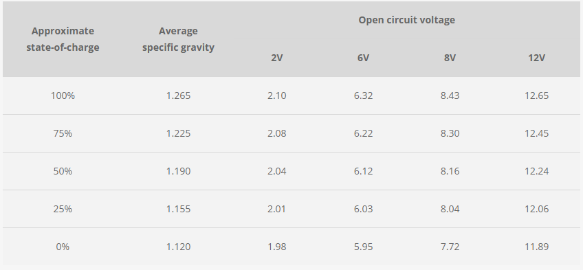 유속을 측정하는 유속계(Hydrometer) 사용해서 납축(lead acid) 전지의 SOC를 측정할 수 있습니다. 납축 전지가 방전되면서 유황산(sulfuric acid)이 전해액에서 점차 줄어 들게 됩니다. 그리고 유황산은 황산염(sulfate)과 결합합니다. 이때 전해액의 비중(specific gravity)이 점점 줄어 들게 됩니다. 즉 유속이 빨라지게 되는 것입니다.