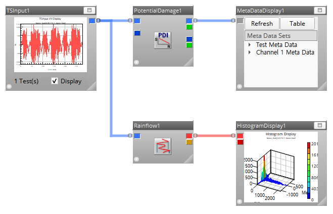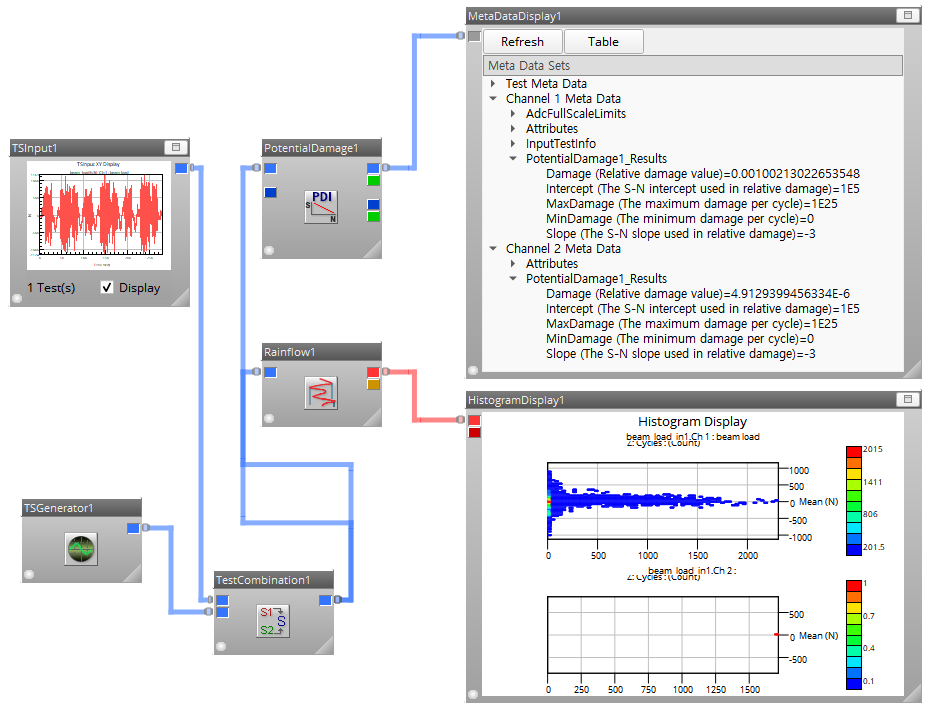 분석 구성은 위와 같이 진행합니다. 하중 입력 값(TSInput1)을 PotentialDamge1 모듈을 사용해서 Damage 값을 계산합니다.