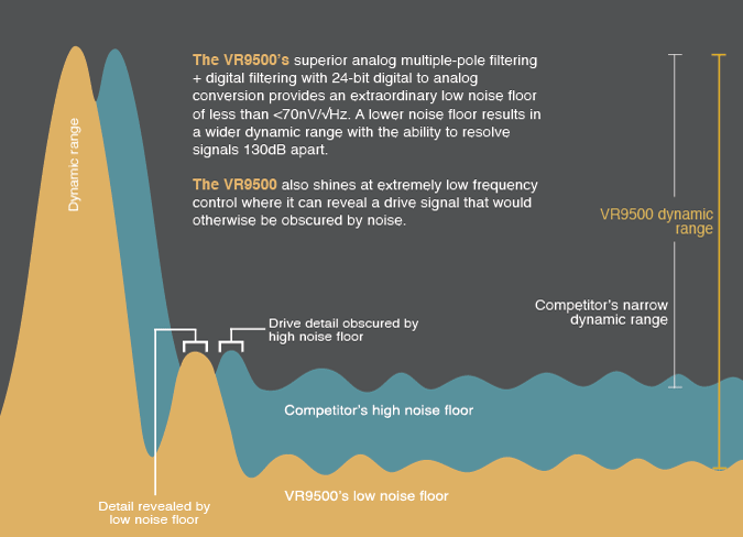기존의 VR8500은 노이즈 층(Noise Floor)에 대한 고려가 없었지만 VR9500, VR10500은 별도의 제어 필터를 사용해서 <70nV/sqrt{Hz} 로 노이즈 층을 유지 합니다.