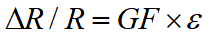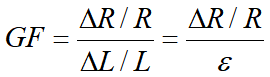 위 수식에서 GF는 Gauge Factor로 각 스트레인 게이지가 가지는 고유 값입니다. 변형률(Strain, ε)은 저항의 변화률을 측정할 수 있다면 GF와 함께 위 수식에 대입하여 구할 수 있습니다.