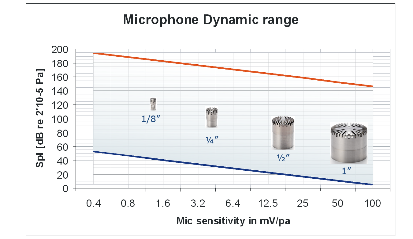 일반적으로 마이크로폰의 주파수 범위는 0.01~100kHz 내에서 선택이 가능하고 응답은 0~180dB 또는 특수한 상황에서는 그 이상의 값 측정이 가능 합니다.