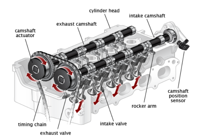 캠 위치 센서는 위 그림처럼 캠축의 회전 각도를 측정해서 점화(Ignition)시기를 제어합니다.