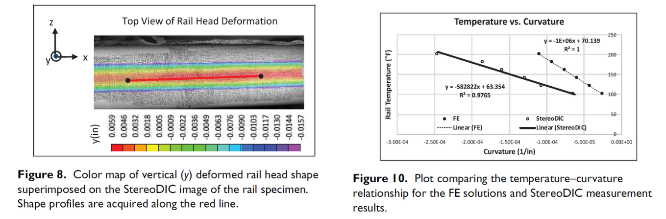 이 그림은 팜테크에서 판매중인 Correlated Solution사의 VIC-Stereo 로 철도를 촬영하고 온도에 따른 변위를 측정해서 Stress와 온도사이 관계를 분석한 자료 입니다.