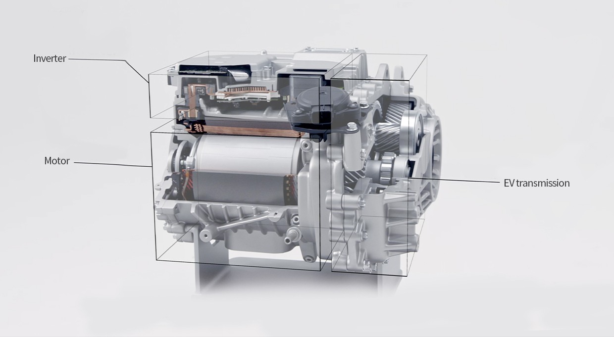 일반적인 전기 자동차는 위 그림처럼 인버터와 모터로 구성되어 있고 컨버터는 인버터와 일체화 되어 있습니다.