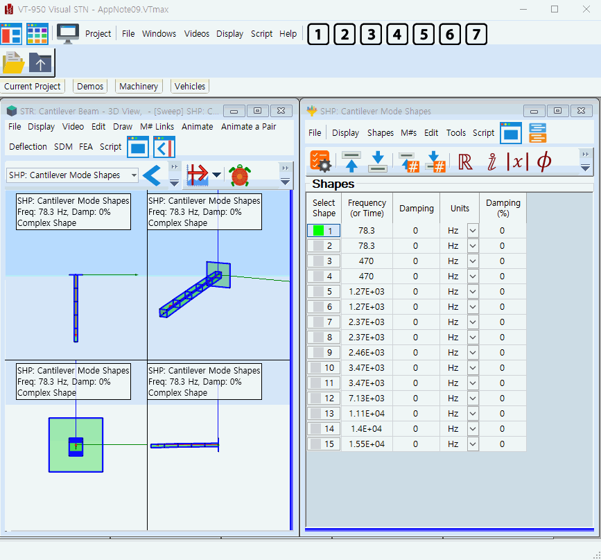 위 그림은 팜테크(FAMTECH)에서 제공하는 Vibrant Mescope VT950으로 빔(Beam) 구조의 모달 분석을 진행한 결과 입니다.