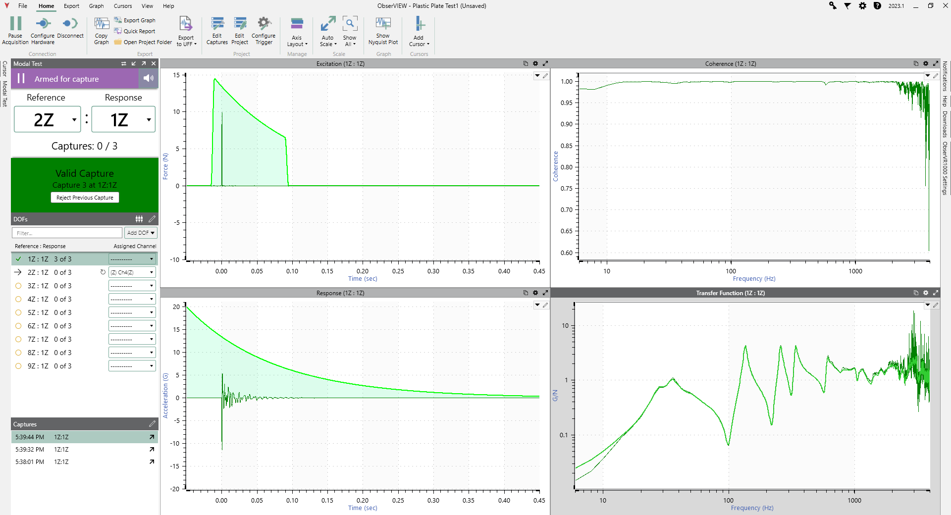 6. "Acquire Data"를 클릭 후 테스트를 진행합니다. 잘못 칠 경우 그림3과 같이 "Double Hit"이 발생할 수 있습니다.