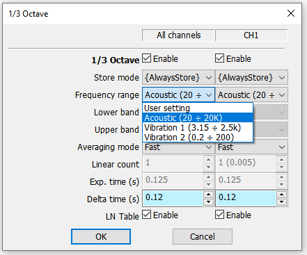 Octave도 1/3 이외에 1/6, 1/12, 1/24, 1/48을 Fractional Octave에서 설정 가능 합니다.