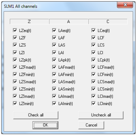 SLM에서 dB로 표현되는 값은 위와 같이 있습니다. 이 중에서 선택해서 값을 출력 할 수 있습니다. Z, A, C Weighting에 대한 설명은 앞에서 진행하였고 상황에 맞춰 min, max, fast, slow 등 다양한 설정을 선택해서 확인결과에 적용할 수 있습니다.