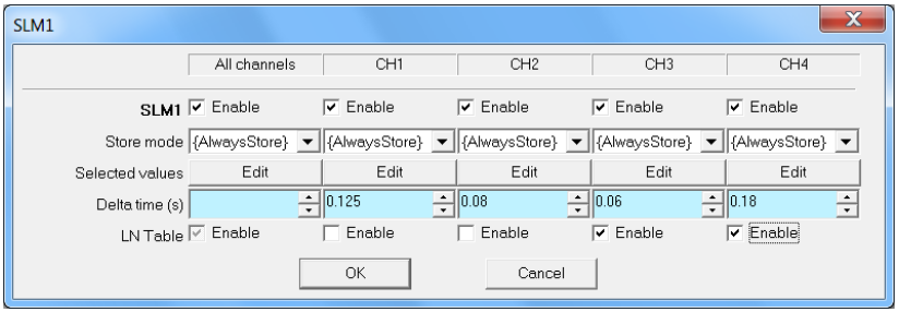 그림과 같이 SLM에서 Delta Time 설정이 가능 합니다. Delta 시간은 시계열(Time Domain)에서 저장된 Storing Data간의 간격을 의미 합니다. 즉, Leq(t)의 평균 시간이 됩니다. Delta 시간은 Exponential Averaging의 시상수(Time Constant)보다 크면 안됩니다. 만일 크게 되면 eq값 계산 전에 이미 Averaging이 진행되기 때문입니다.