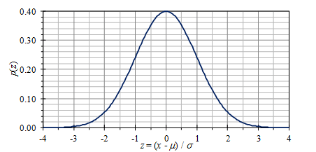 여기서 μ는 변수 x의 평균이고, σ는 표준 편차입니다. 평균 값과 표준 편차는 가우시안 분포를 정의합니다. 이 분포는 대칭적이므로 왜도(skewness)는 0이며, 첨도(kurtosis)는 3입니다.