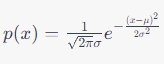 정규 분포(Normal Distribution)이라고도 불리는 가우시안 분포는 통계 분석에서 중요한 확률 함수입니다. 더 잘 알려진 이름 중 하나는 형상이 벨처럼 생겨서 Bell Curve라고도 불립니다. 아래 식은 가우시안 확률 밀도 함수(PDF) p(x)를 정의합니다.