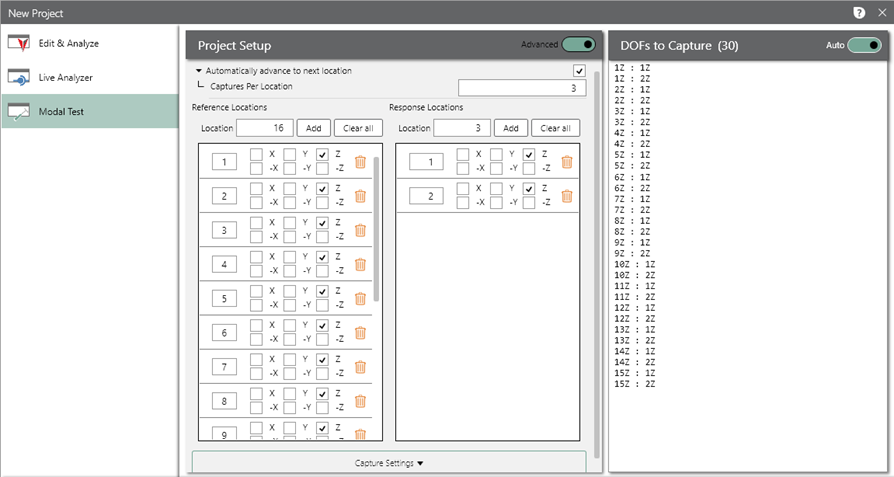 - 자유도 스캔 및 응답 수집: 사용자가 프로젝트를 생성한 후, 시퀀서는 사용자가 정의한 자유도(DOF)를 스캔하여 동일한 응답 위치/방향을 가지는 경우를 확인합니다. 만약 그러한 경우가 있다면, 시스템은 사용자에게 적절한 위치에서 타격을 가하도록 안내하며, 이를 통해 여러 자유도의 응답을 동시에 수집할 수 있습니다.