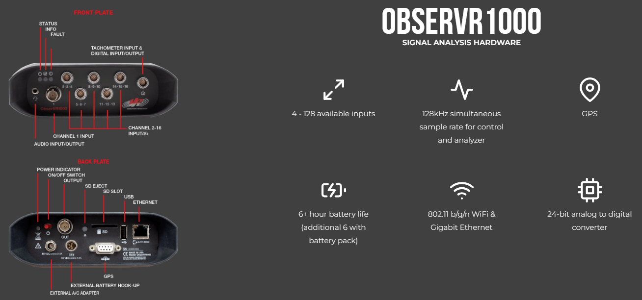 ObserVR1000은 데이터 획득(DAQ) 장비로서, 다양한 기능을 갖추고 있습니다. 이와 연동되는 ObserVIEW 소프트웨어를 통해 이러한 기능들을 효율적으로 사용할 수 있습니다. 주요 기능들을 간단히 정리하면 다음과 같습니다.