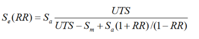 DesignLife에서는 Goodman 방법이 확장되어, 어떤 R 비율에서도 동등한 응력을 결정할 수 있게 되었습니다. R 비율은 최소 응력 대비 최대 응력의 비율로, 다양한 응력 사이클의 조건을 나타냅니다. 이 확장은 더 넓은 범위의 응력 조건 하에서 재료의 피로 수명을 예측할 수 있게 해줍니다.
