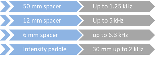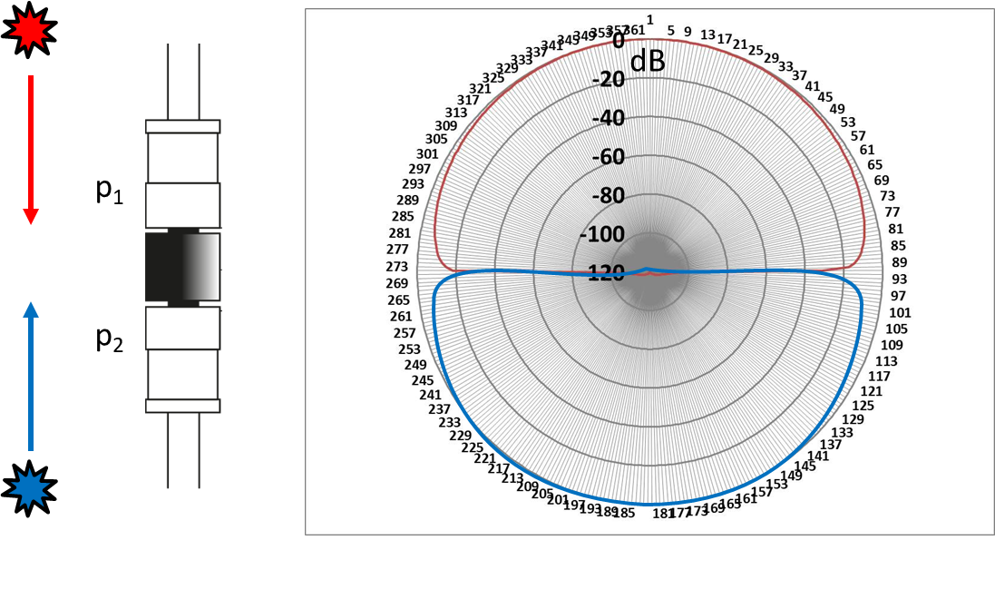 두 마이크로폰 간의 거리는 측정 가능한 주파수 범위를 결정합니다. 특히, 정확한 측정을 위해 주파수의 파장이 두 마이크로폰 간의 거리보다 충분히 길어야 합니다.