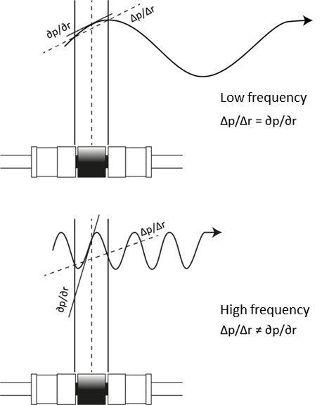 위 그림은 두 마이크로폰 간의 거리 (Δ𝑟)가 측정 가능한 주파수 범위에 어떻게 영향을 미치는지를 설명하고 있습니다. 이를 통해 정확한 측정을 위해 필요한 조건들을 명시하고 있습니다.