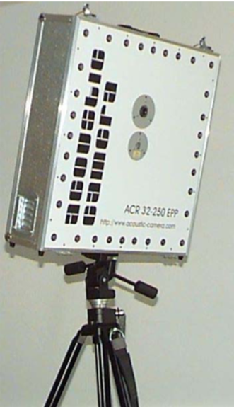 Acoustic Camera는 소리의 위치를 측정하는 시스템을 결합한 장비입니다. 이 장비는 마이크로폰 배열과 디지털 카메라를 결합하여, 소리의 위치를 시각적으로 보여줍니다. 1999년 하노버 무역 박람회에서 GFaI(Gesellschaft zur Förderung angewandter Informatik e. V.)에 의해 처음 공개되었습니다.