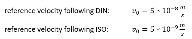 - v0는 기준 속도(Reference velocity)입니다. DIN과 ISO 따른 기준 속도는 아래와 같습니다. 사람이 인지가 가능한 최소 속도를 기준으로 설정하였습니다.