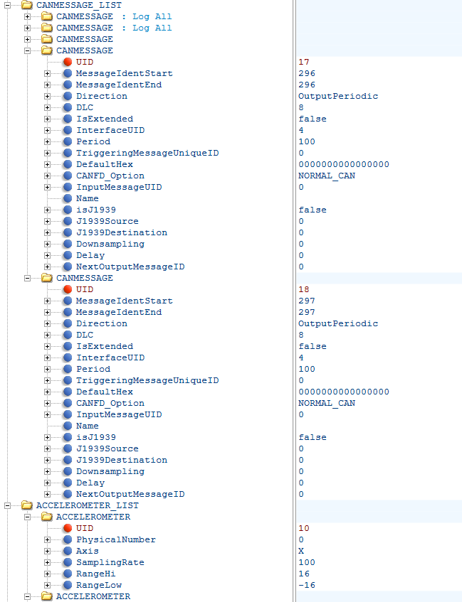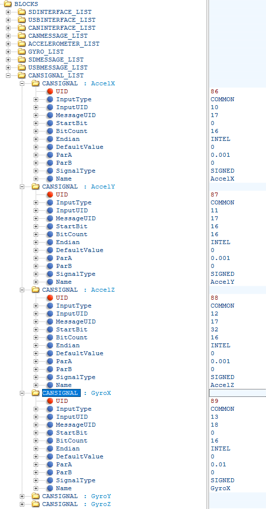 이번 실습의 CANMESSAGE의 UID는 17, 18이고 Accleration의 UID는 10~12, Gyro의 UID는 13~15 입니다.