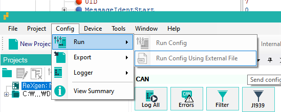 4. 앞서 설정을 마친 XML을 Config -> Run -> Run Config Using External File 을 통해 프로그램 합니다.