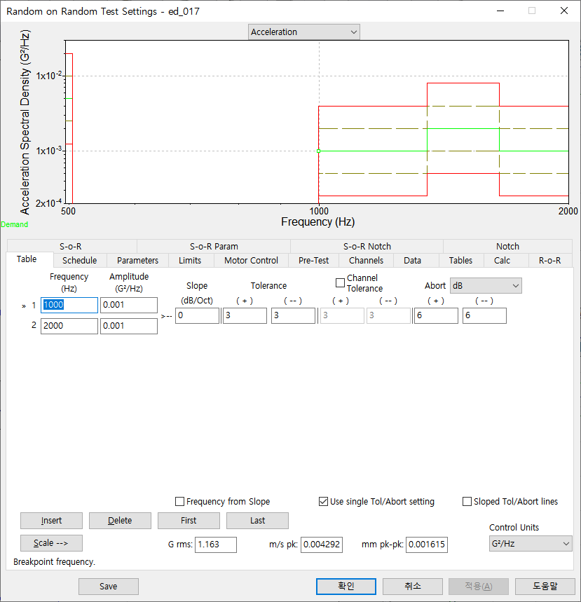 이번 시험은 VR Controller에서 제공하는 ROR(Random on Random) 기능을 사용하여서 제어를 해볼 것입니다. ROR은 Random Vibration을 진행하는 주파수 밴드(Frequency Band)에 추가로 새로운 주파수 밴드는 입력 하는 것입니다.