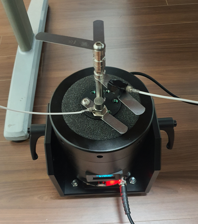 - 채널1의 가속도 센서는 PM-100 베이스단에 붙이고 채널2의 가속도 센서는 시편의 막대에 붙였습니다.