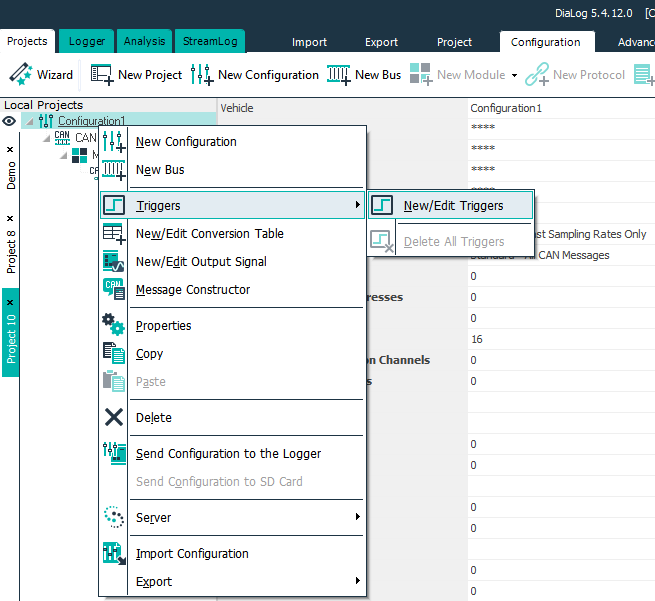 7. 아래와 같이 Configuration 명에 마우스 우 클릭 후 Triggers -> New/Edit Triggers를 선택 합니다.