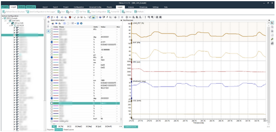 - 데이터 디코딩: 데이터를 쉽게 디코딩하여 물리 값으로 저장하거나 실시간으로 오실로스코프에서 볼 수 있습니다.