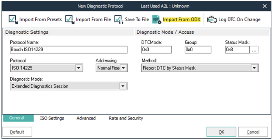 - ODX 파일 가져오기: ODX 파일을 쉽게 가져와 프로토콜 설정을 가져올 수 있습니다.
