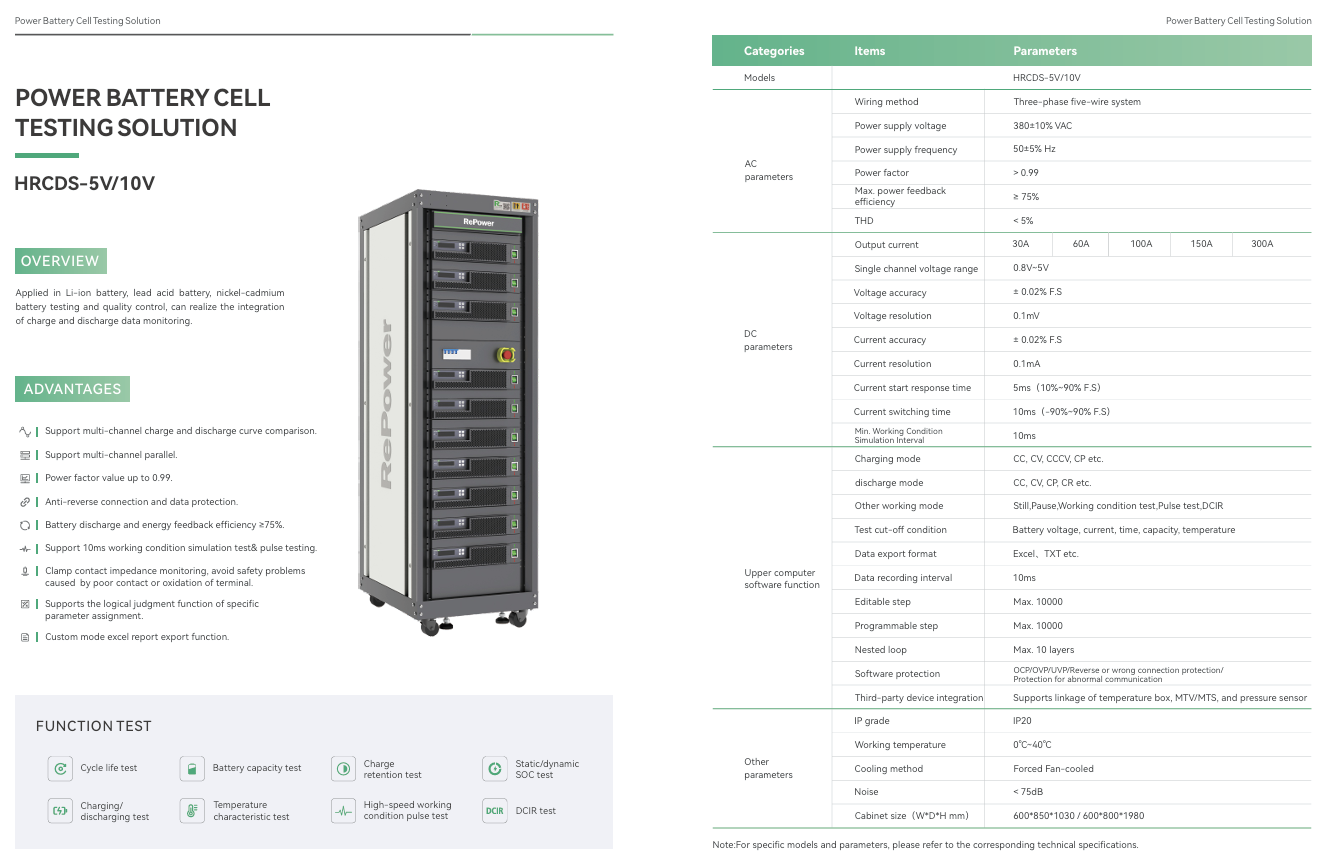 이 시스템은 충전과 방전 데이터를 실시간으로 모니터링하며, 10V에서 최대 1500V까지의 넓은 전압 범위를 지원합니다. 또한, 고속 작업 상태 펄스 테스트, DCIR 테스트, 온도 특성 테스트와 같은 다양한 기능을 통해 배터리의 전체 수명 주기를 평가할 수 있습니다. 더불어 최신 에너지 피드백 시스템을 통해 최대 92% 이상의 에너지 효율을 자랑하며, 사용자의 요구에 맞춰 맞춤형 리포트 생성과 데이터 보호 기능을 제공합니다.