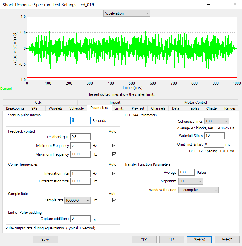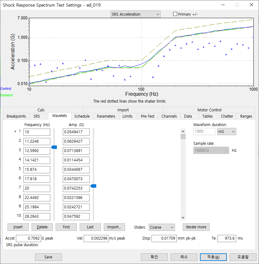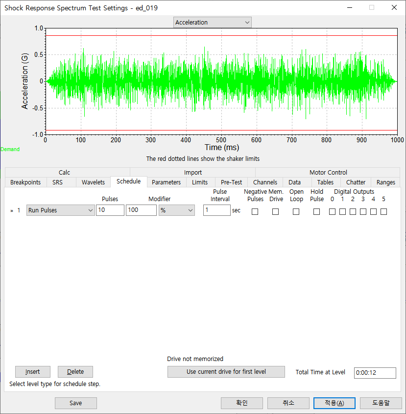 이번 시험은 VR Controller에서 제공하는 SRS(Shock Response Spectrum) 충격 진동시험 기능을 사용하여서 제어를 해볼 것입니다. SRS를 사용해서 Random Burst 파형을 Sythesis 과정을 통해 만듭니다.
