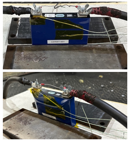 배터리 모듈 전체에 걸쳐 단락이 발생할 수 있는 상황을 시뮬레이션합니다.