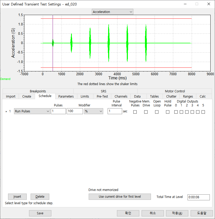 3. Schedule은 아래와 같이 1번의 Pulse 시험만 진행 합니다.