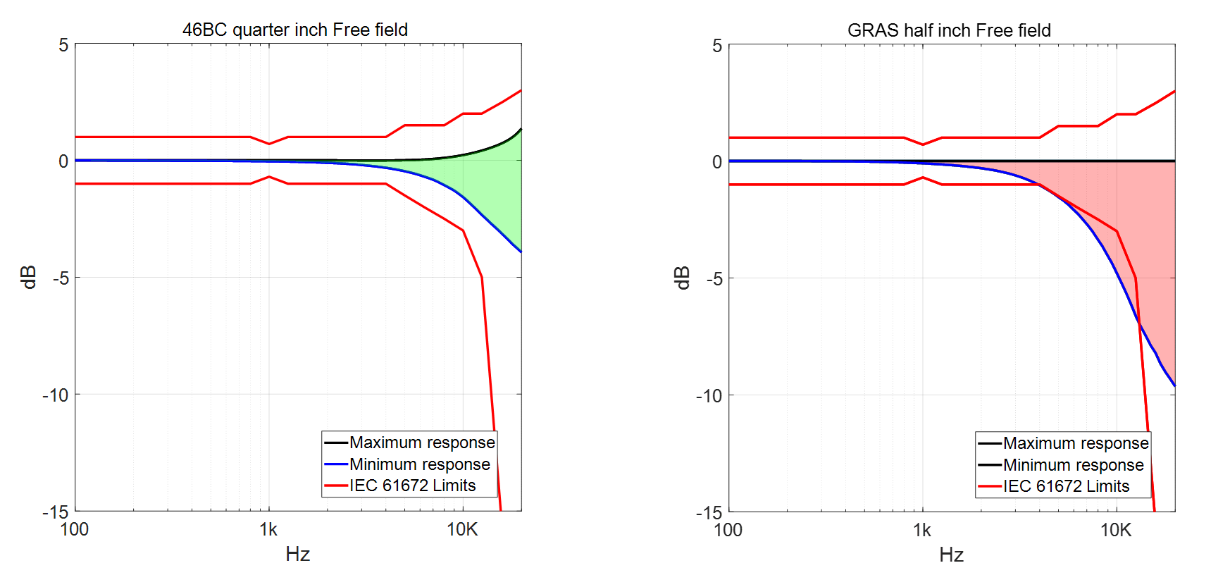 마이크로폰의 주파수 응답 특성은 측정하려는 주파수 범위와 다이아프램 크기에 따라 크게 달라집니다. 고주파 소음이 중요한 환경에서는 1/4인치 마이크로폰이 유리하지만, 저주파 소음을 포함한 소음 환경에서는 노이즈 플로어가 낮은 1/2인치 마이크로폰이 더 적합할 수 있습니다. 따라서 측정 대상에 맞춰 마이크로폰을 선택하는 것이 매우 중요합니다.