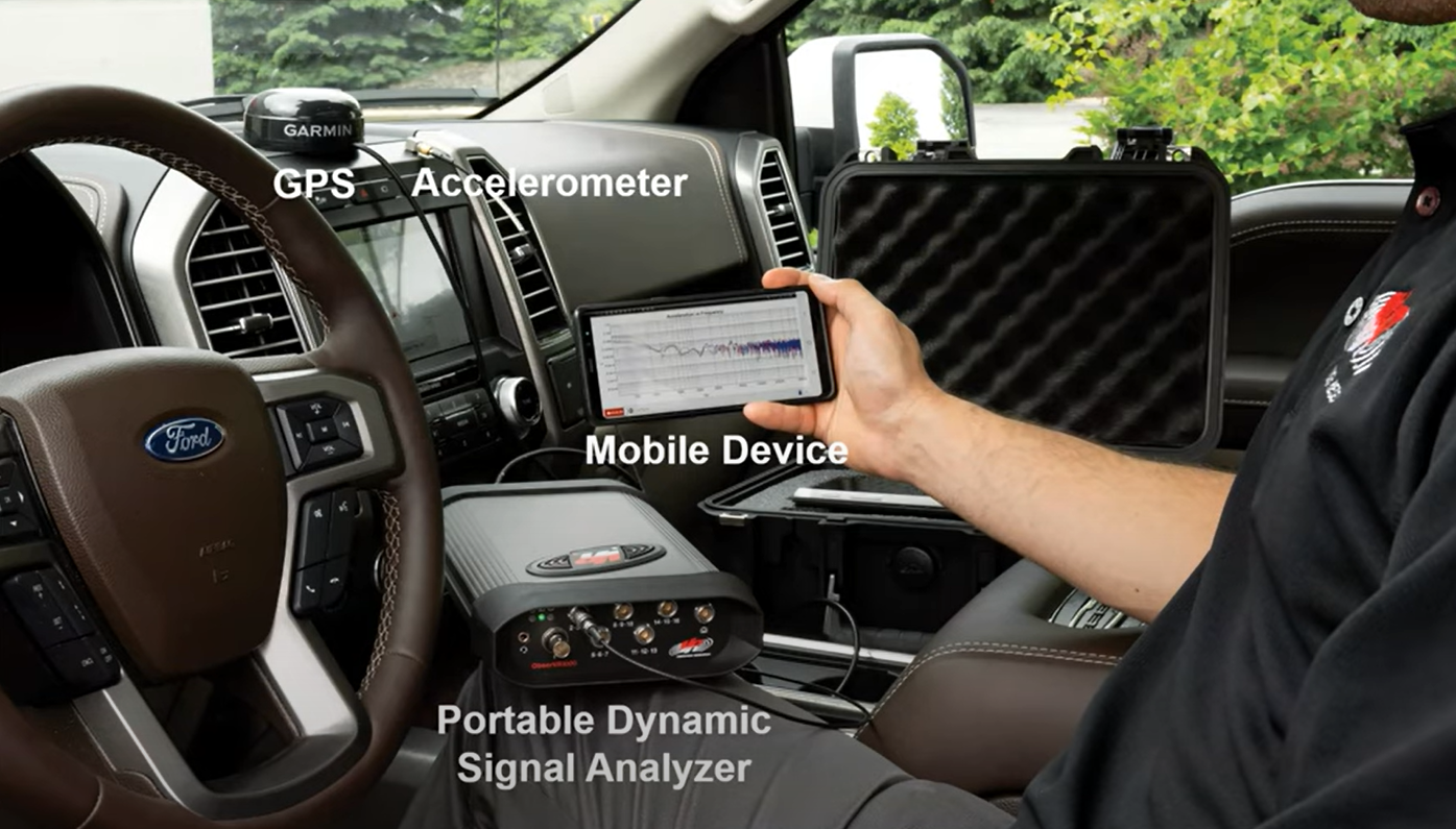 - Observer 1000 데이터 수집 시스템을 사용하여 차량에 여러 위치에 걸쳐 진동을 측정할 수 있도록 3축 가속도계를 부착했습니다. 이 장비는 각 축에서 발생하는 진동을 실시간으로 기록하며, 고해상도의 진동 데이터를 제공합니다.