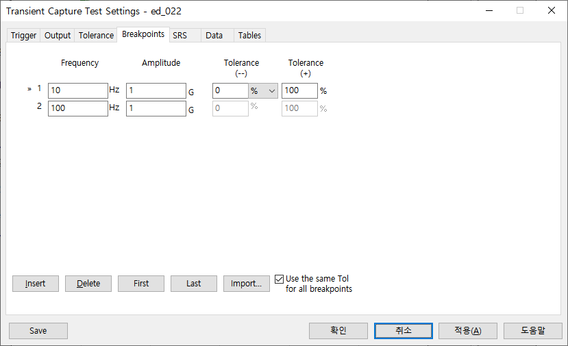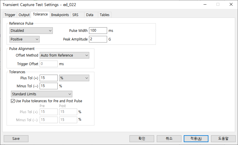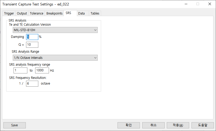 6. 충격 파형 SRS 분석 시 사용할 설정입니다. Default로 진행 합니다.