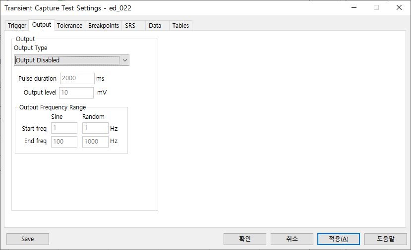3. 출력 Drive는 진동 시험기를 사용하지 않기 때문에 별도 입력을 하지 않습니다.