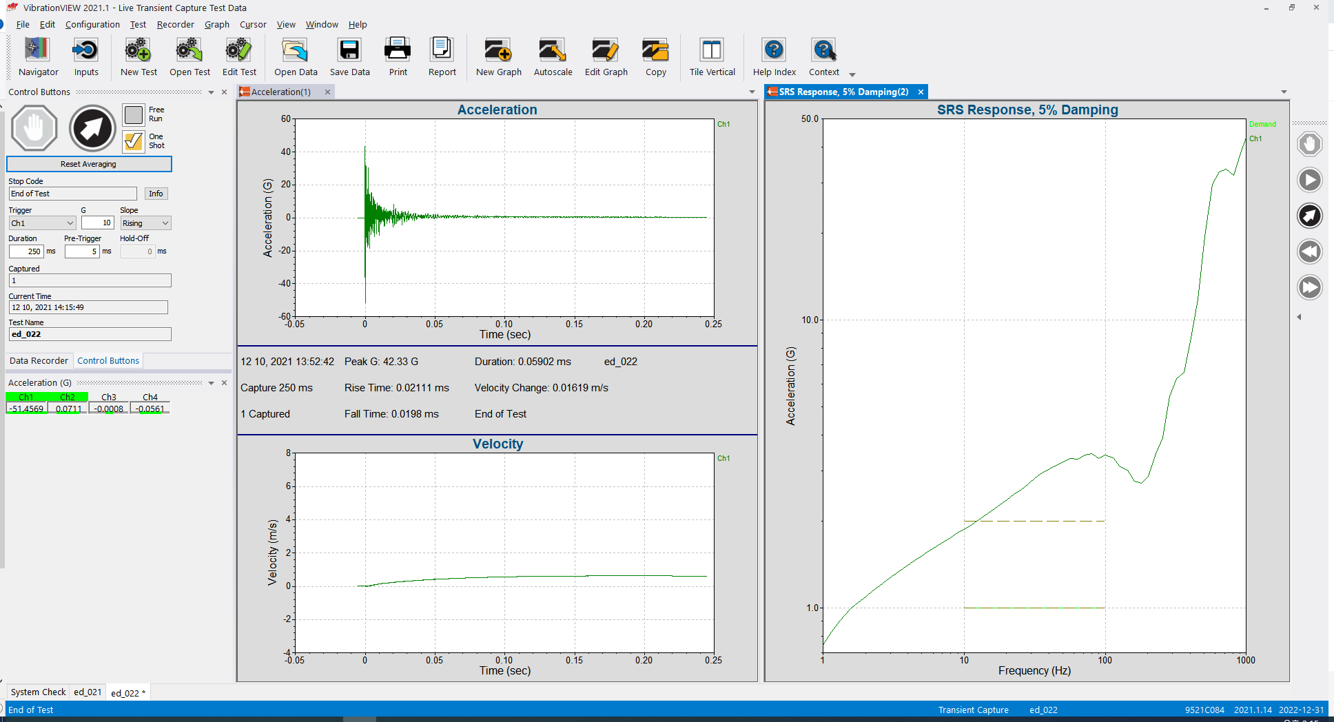 TC는 직접 출력 Drive를 줘서 진동 시험기에 충격 진동 (Shock Vibration)을 줘서 응답을 측정하는 방법이 있고 측정 채널만을 이용해서 해당 센서에 충격 값을 주고 읽은 값을 측정하는 방식이 있습니다.