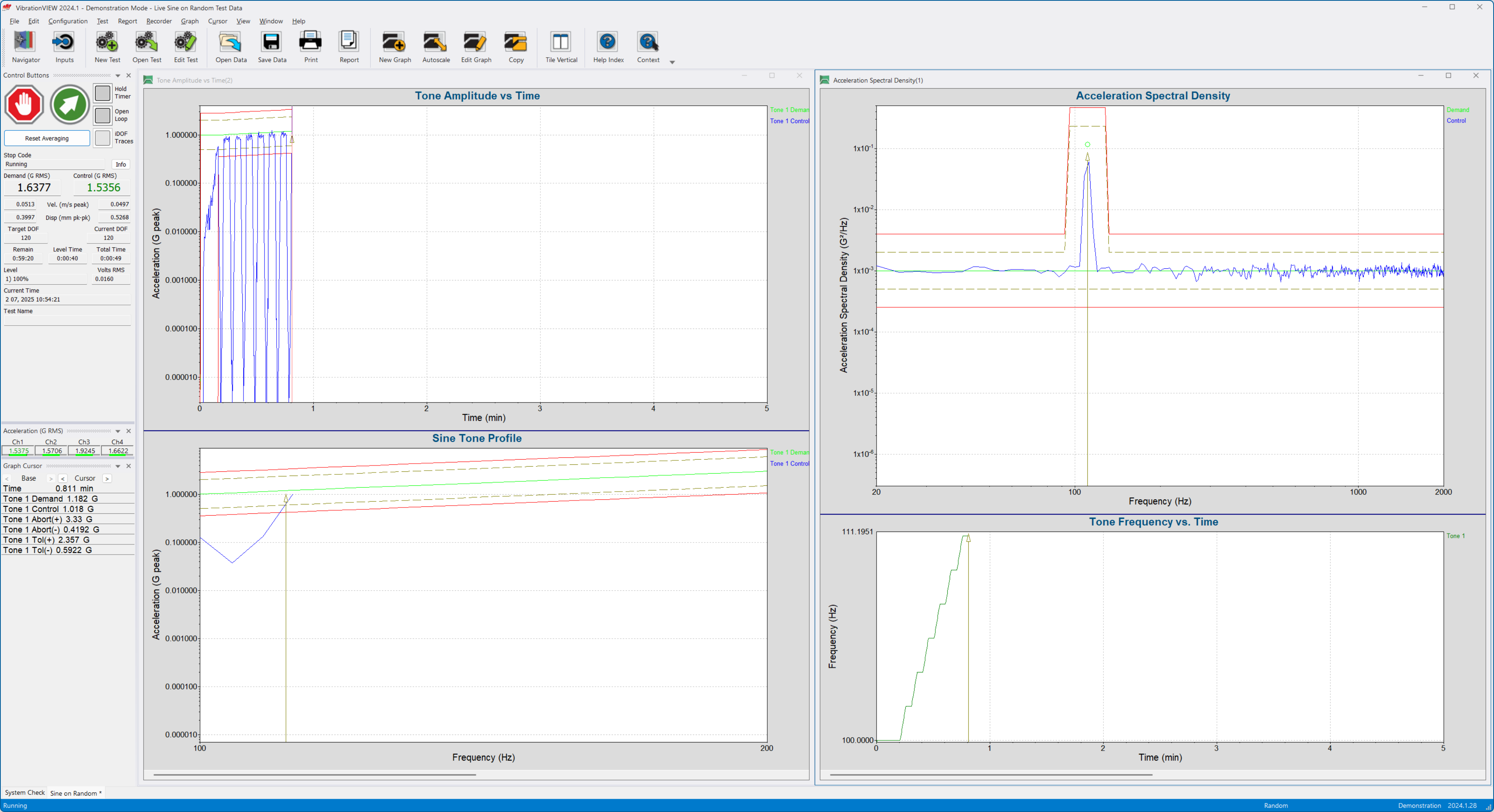 Sine-on-Random은 특정 주파수에서 강한 진동 응답을 분석하는 데 유용한 기법입니다. Sine Tone의 주파수 및 진폭을 조정하고, 스위프 속도를 설정하며, Burst Mode를 활용하여 다양한 테스트 환경을 구성할 수 있습니다.