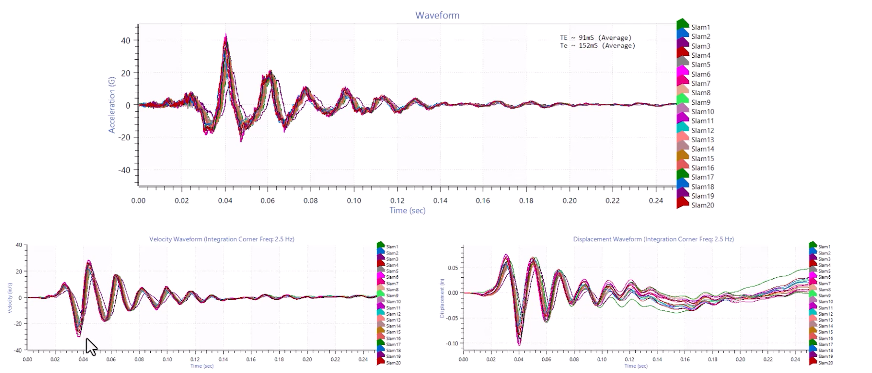 충격 시험에서는 단순히 가속도만 고려하는 것이 아니라, 속도 변화량(ΔV) 및 변위(Displacement)도 시험 결과에 중요한 영향을 미친다. 예를 들어, 동일한 SRS 목표값을 달성하는 두 개의 충격 신호가 있다고 가정할 때, 하나는 상대적으로 작은 속도 변화량을 갖고 다른 하나는 매우 큰 속도 변화량을 가질 수도 있다. 이 경우, 제품이 받는 충격의 강도가 달라지고 시험 결과가 다르게 나타날 수 있다. 따라서, 속도 및 변위 조건을 시험 사양에 명확히 정의해야 제품이 실제 환경에서 받는 충격과 유사한 시험을 수행할 수 있다.