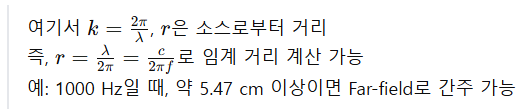 두 영역의 경계는 파동의 파장(λ)과 관련이 있으며, 일반적으로 파장에 비례한다. 예를 들어, 1000 Hz의 소리는 약 5.47 cm 이상 떨어진 거리에서 원거리장 특성을 보인다. 즉, 주파수가 높을수록 원거리장이 형성되는 거리는 더 가까워진다.