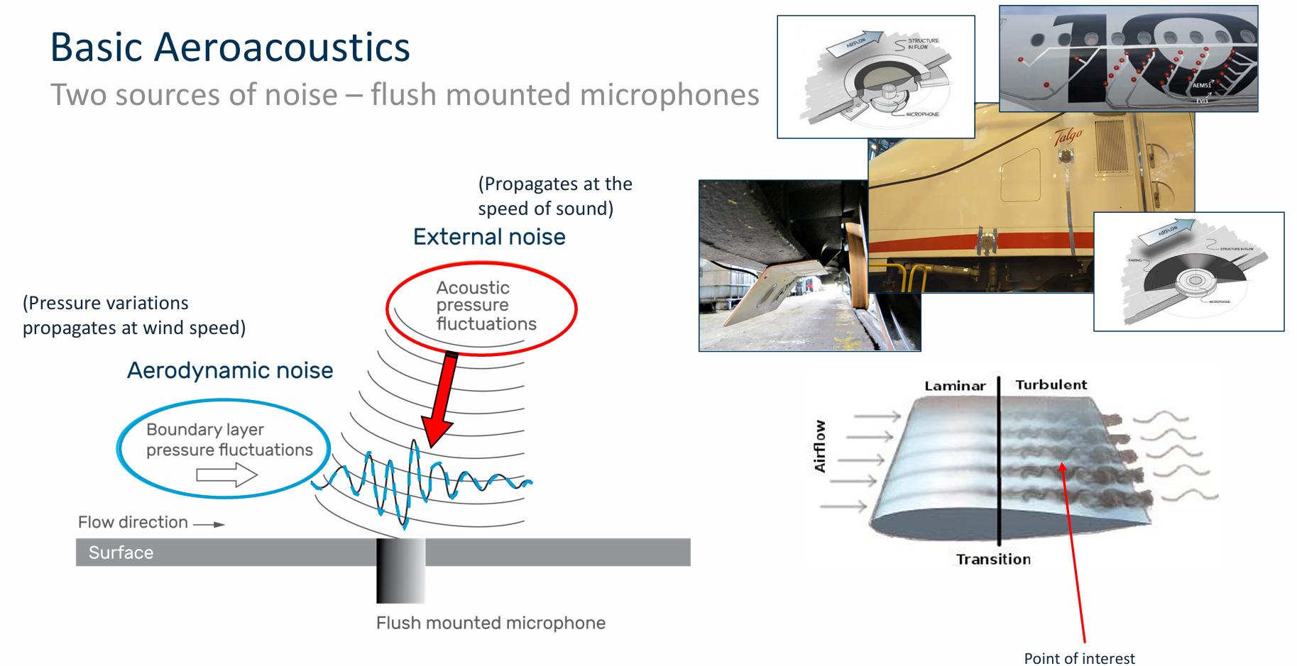 자동차, 항공우주, 국방, 재생에너지 산업 등에서는 경계층 내 소음을 측정하는 일이 매우 중요하다. 주요 목적은 공기 흐름으로 인한 소음을 정밀하게 분리해내는 것이다. 예를 들어, 구조물에서 방출되는 소리의 양을 정량화하거나, 마이크로폰 배열을 사용해 소리의 발생 위치를 파악하고, 구조물에 작용하는 난류 응력을 측정하는 데 사용된다.