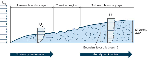 경계층에서 발생하는 소음을 정량화하고 이해하는 것은 기술적으로 매우 어렵다. 그 이유는 다음과 같다.