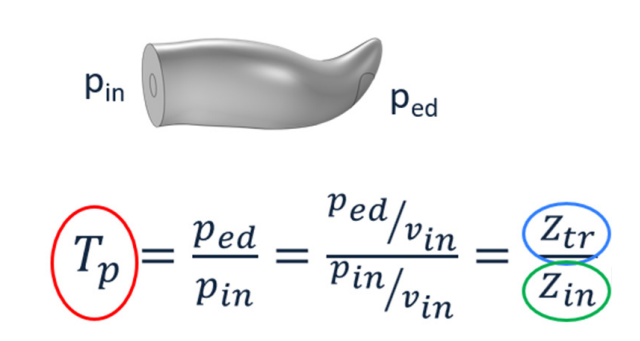 압력 전달(pressure transfer)을 보다 정확히 이해하기 위해서는 귀 시뮬레이터의 입력 임피던스(input impedance) 역시 함께 고려해야 합니다. 입력 임피던스와 전송 임피던스를 이용하여 압력 전달 계수(pressure transfer coefficient)를 계산할 수 있으며, 이를 통해 입력 압력에서 고막 위치의 압력으로 변환되는 과정을 정밀하게 예측할 수 있습니다.