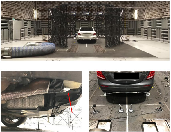 실제 도로 시험 외에도, 이번 연구에서는 반무향실(hemi-anechoic chamber)에서 동일한 조건을 재현하여 시뮬레이션을 수행하였습니다. 이를 통해 날씨나 환경 조건에 영향을 받지 않고 일정한 실험 조건에서 반복적인 시험을 할 수 있습니다.