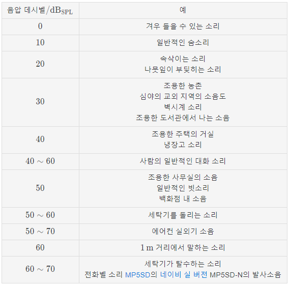 음압(SPL),소리세기(SIL), 데시벨에 따른 소리 크기 비교 본문
